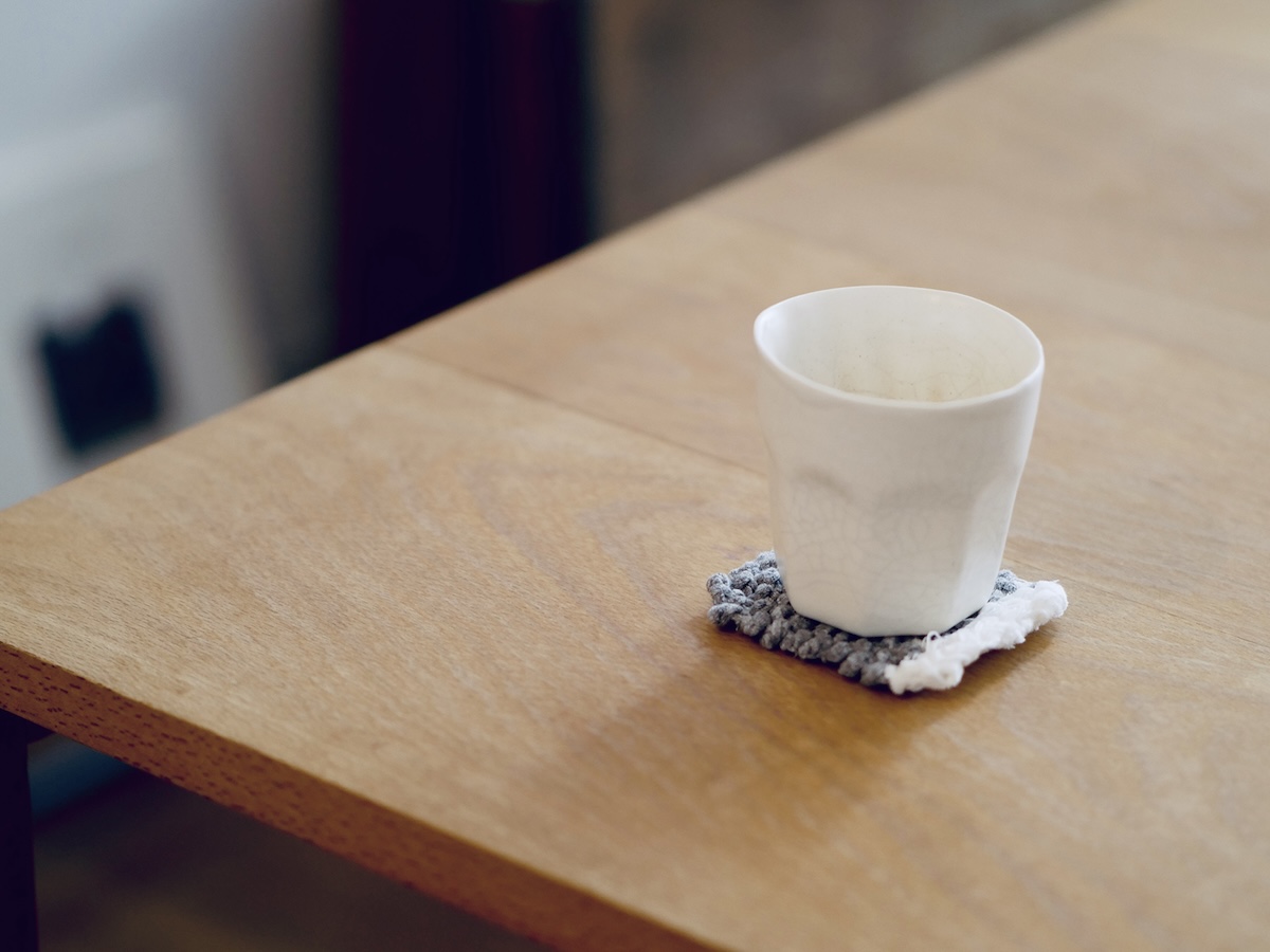 生地を細く切って編み棒で編んだコースターなど、なんだか小さなものばかりですが、編む楽しさも味わっていただけたらとキットでの糸のお裾分けも予定しています。